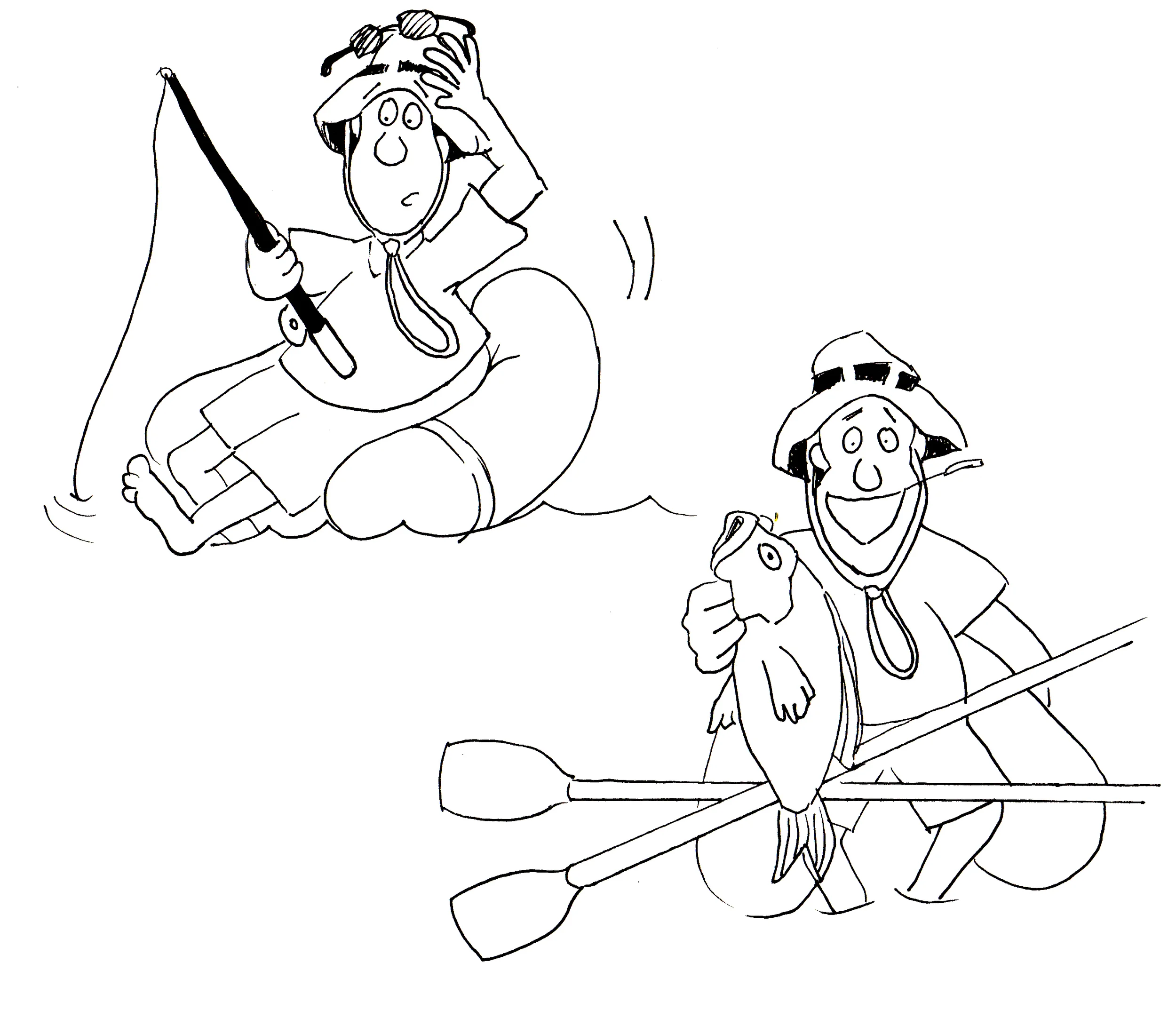 I was quite entertained (and kind of proud of myself) for making the "best" of it, and I shouted to the other guys across the lake about my somewhat goofy, but, ...not-so-funny...incident. Then I heard another shout back. And another. And the other guys were yelling a conversation...but I couldn't really tell what was going on...or why? Then I heard...."hhhheeeEEELLLP! HELP!" And the other fella yelled "what's WRONG!?" I still wasn't sure if something was wrong, but they obviously weren't celebrating my fishing skills. Then I hear: "I think my raft is DEFLATING!"