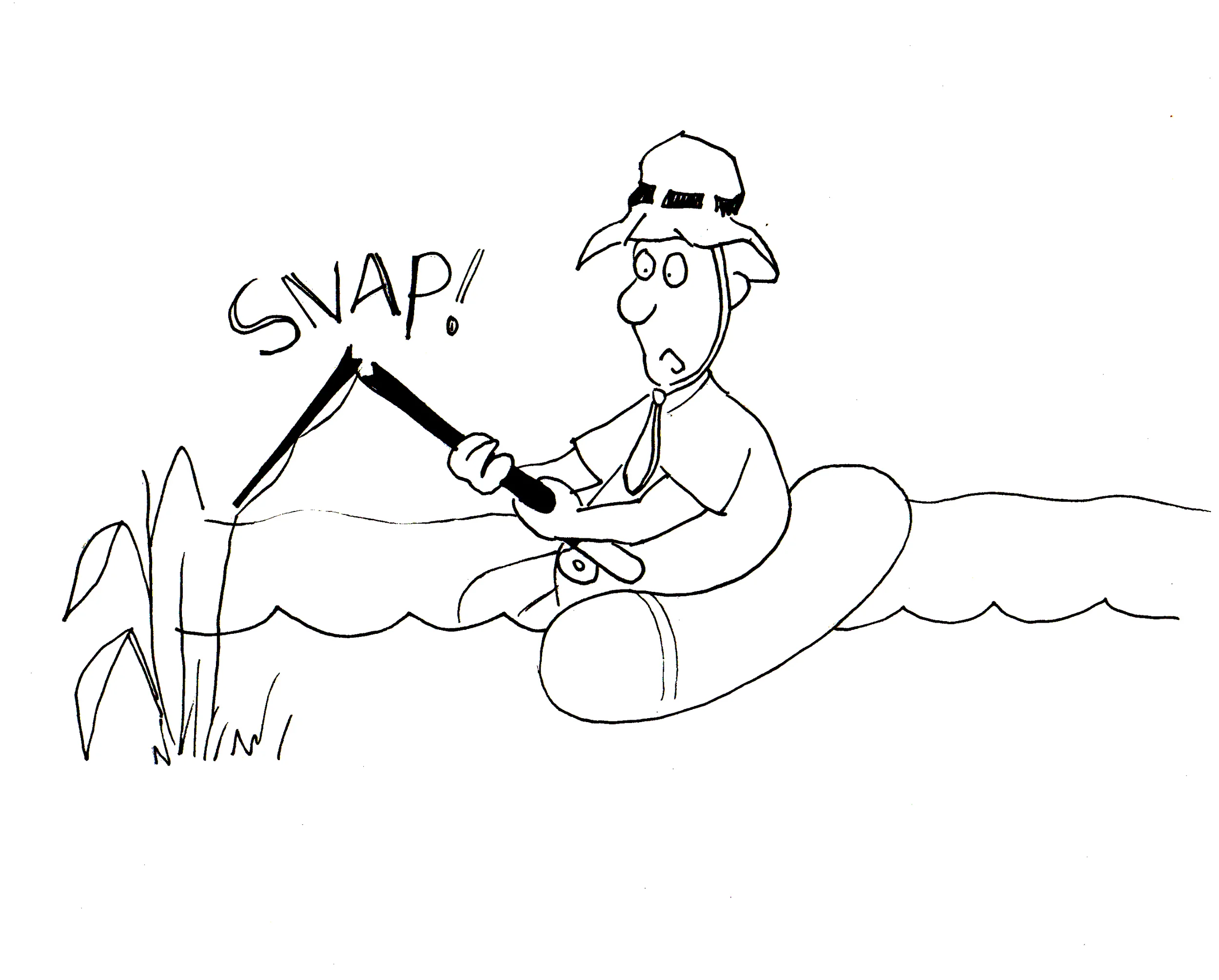I had recently caught a couple this particular trip, that were of decent size, and my father-n-law was across the lake doing quite well I assumed. My other two buddies were somewhat spread apart in the lake doing there own thing. I hadn't even been fishing for a half hour, when...somehow...I went to cast my bait into the reeds on the shoreline, and all-of-a-sudden: SNAP! My rod broke in two....and to this day I don't know why. I didn't pack an extra rod, and I was really not too happy.