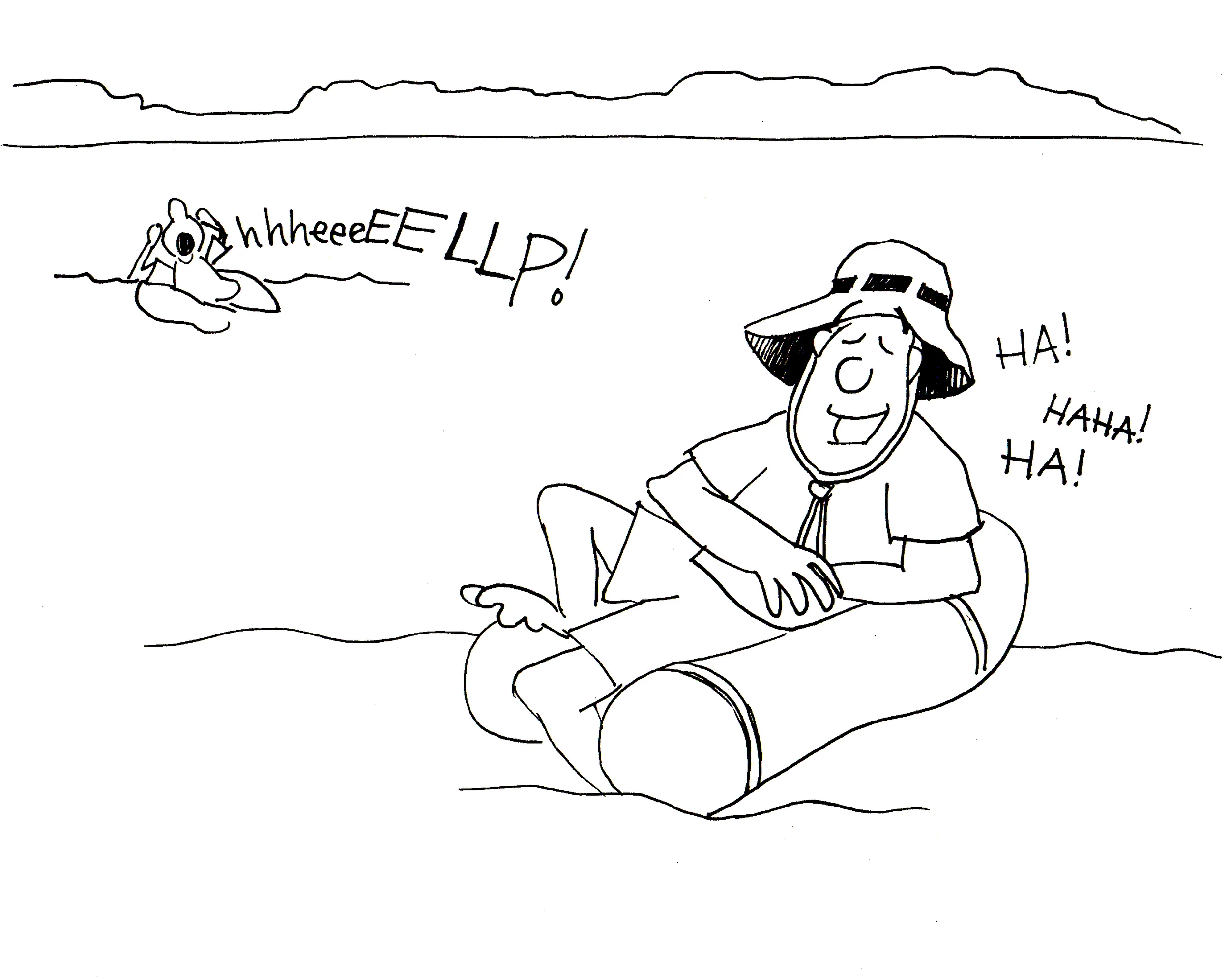 "I'm trying....I think I can make it....ohh...geesh...it's getting louder! I don't know if I can make it to shore! HEEEEELLLP!""